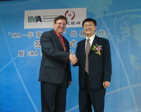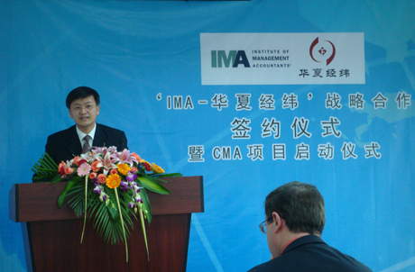 為了推動管理會計在中國的發(fā)展,搭建中國管理會計人才的國際培養(yǎng)平臺,2009年9月13日,華夏經緯財務咨詢(廈門)有限公司與美國管理會計師協(xié)會IMA在廈門市廈禾路富興大廈B幢8樓華夏經緯高級培訓室舉行隆重的項目合作簽約儀式。華夏經緯財務咨詢(廈門)有限公司正式成為IMA在中國第五家、福建地區(qū)首家戰(zhàn)略合作伙伴。雙方戰(zhàn)略合作協(xié)議的簽訂,標志著華夏經緯CMA培訓項目正式啟動。
